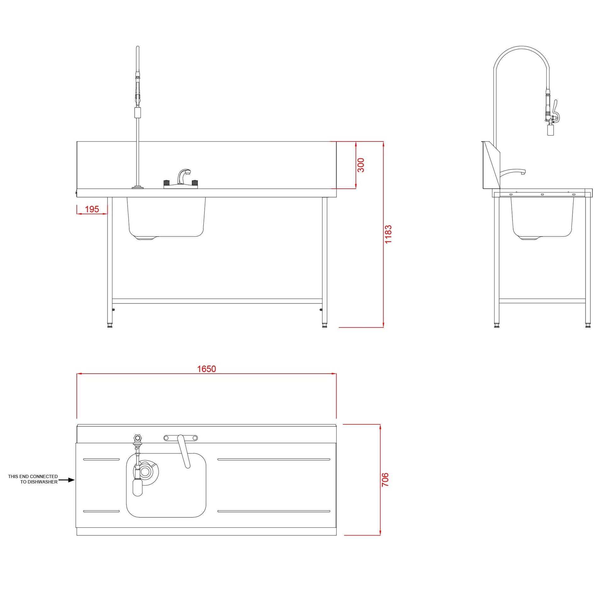 Dimensions: 1183(h) x 1650 (w) x 706 (d) (mm)