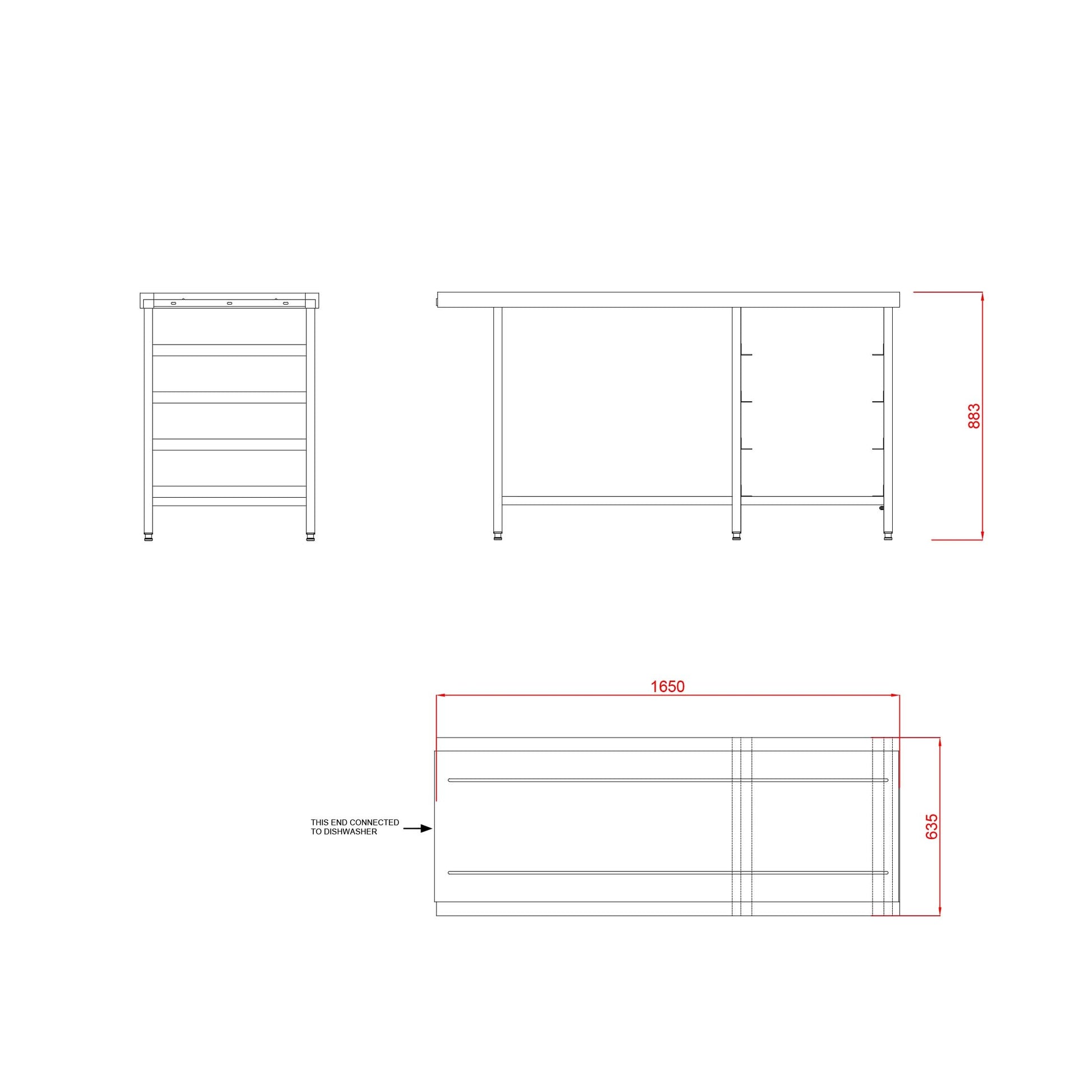 Dimensions: 883 (h) x 1650 (w) x 635 (d) (mm)